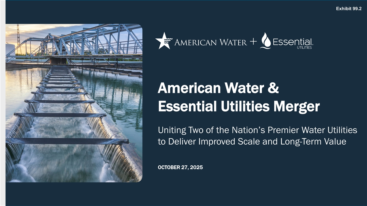 Exhibit 99.2 American Water & Essential Utilities Merger Uniting Two of the Nation’s Premier Water Utilities to Deliver Improved Scale and Long-Term Value OCTOBER 27, 2025